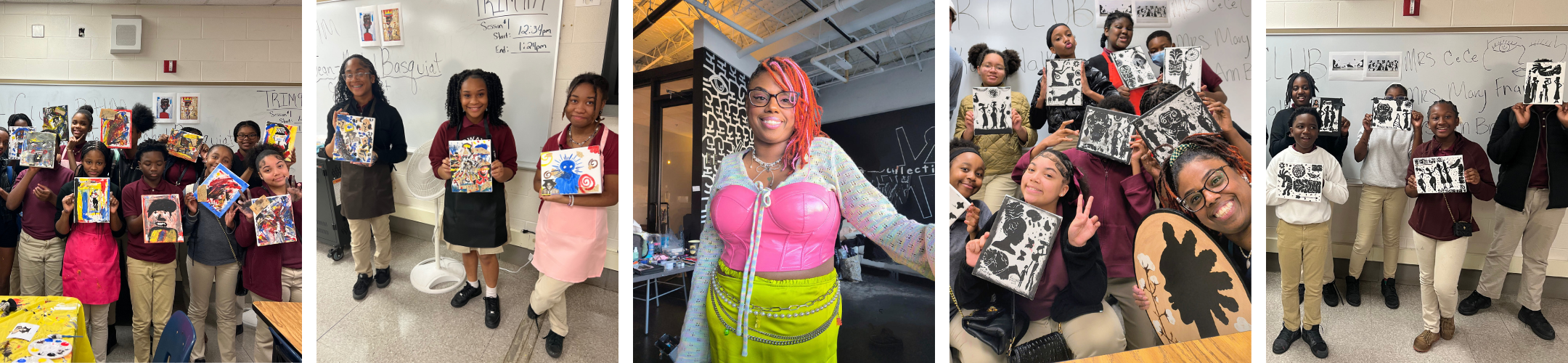 Throughout February, our After School Art program at Calloway-Smith Middle School became a living canvas for cultural celebration. Led by the incredibly talented and passionate local artist Cherrelle Smith (better known to students as Mrs. CeCe) the program introduced students to Black artists who have transformed the world through creativity and courage.